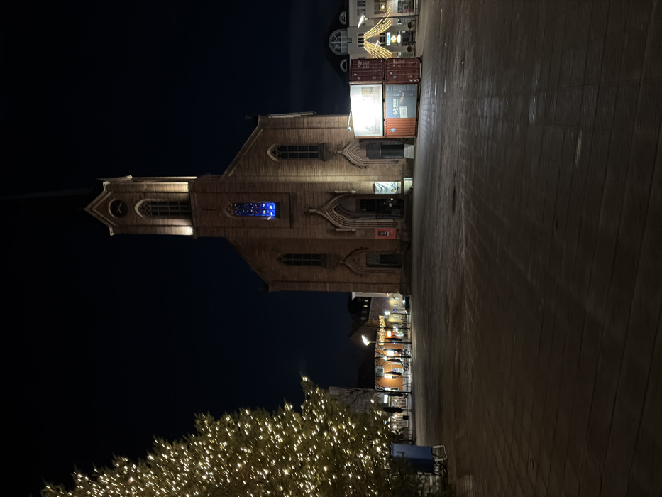 - "A brick building stands illuminated at night, adorned with a window displaying a star-shaped light" by FM-e1pJ93, licensed under CC BY 4.0