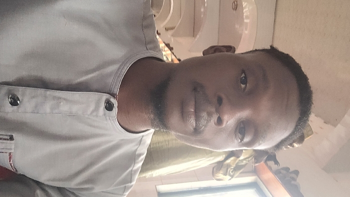 An adult male is depicted in a portrait-oriented, indoor photograph taken in Tudun Nupawa, Nigeria