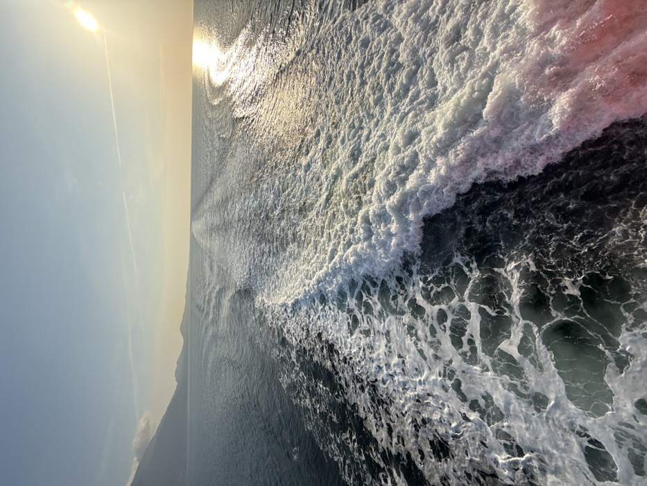 - "The image displays a wide, frothy white wake generated by a vessel underway, viewed from its stern across the Aegean Sea" by FM-GvERo2, licensed under CC BY 4.0