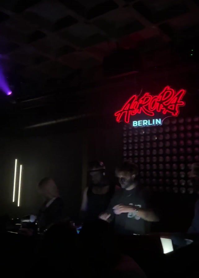 The video captures a scene at a nightclub named "Aurora Berlin"
