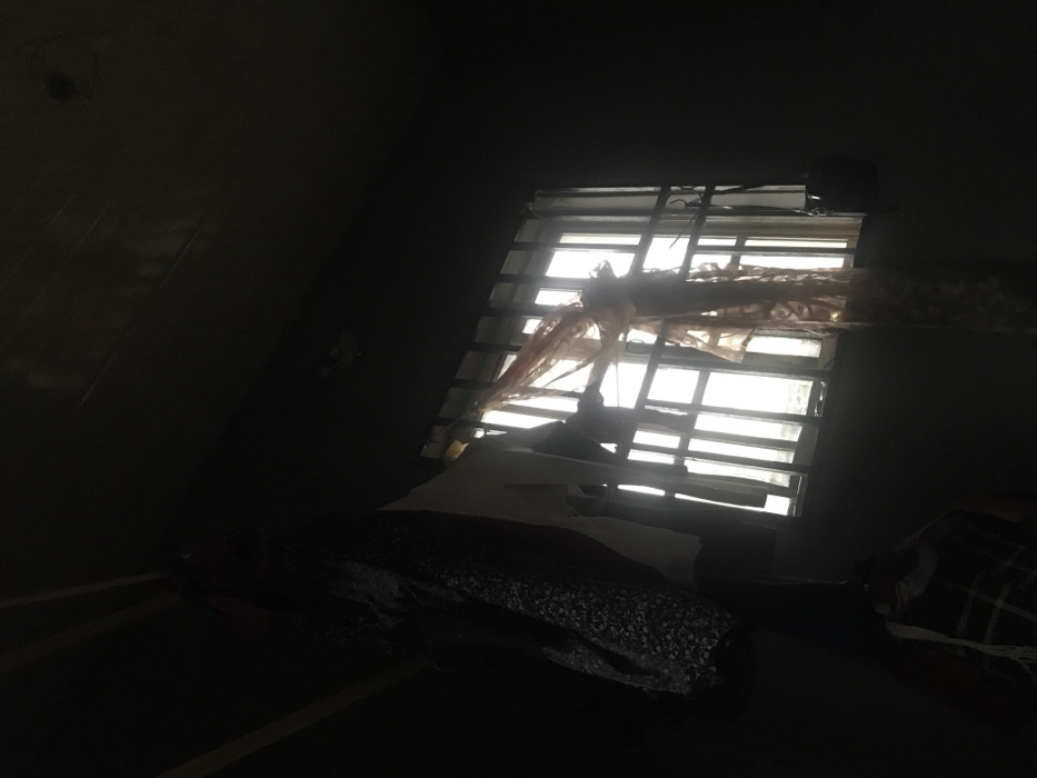 The image depicts the interior of a dimly lit room in Lokoja, Nigeria
