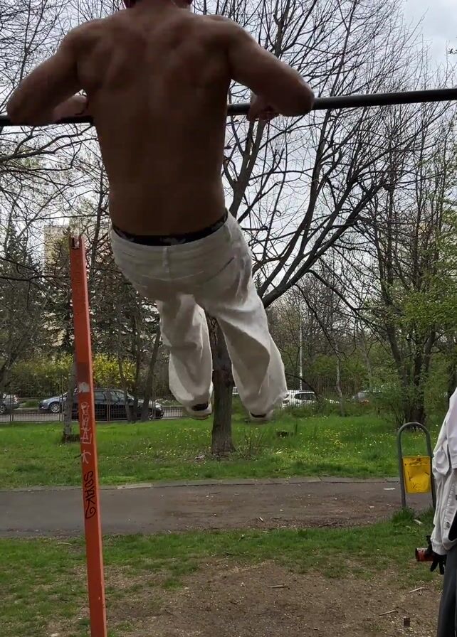 - "A shirtless man performs bar dips in an outdoor park" by FM-TM8b82, licensed under CC BY 4.0