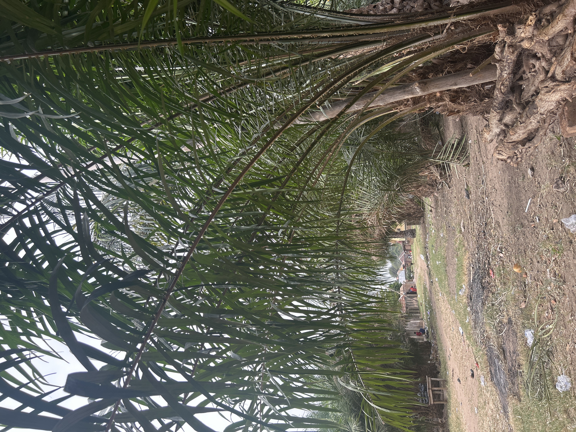 The image depicts a row of palm trees lining a dirt path in Markurdi, Nigeria