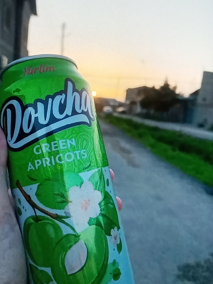 - "A left hand holds a green aluminum beverage can, prominently displaying "Dovcha" and "GREEN APRICOTS" on its label, along with illustrations of green apricots, a cross-section of an apricot, and white apricot blossoms" by FM-1o2DD3, licensed under CC BY 4.0