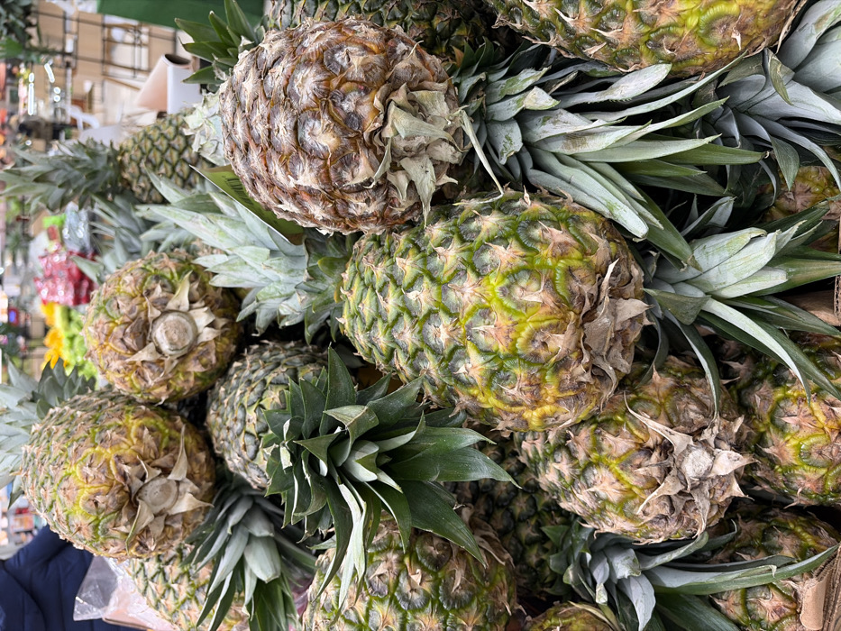 - "The image displays a large, dense pile of pineapples in a retail setting within Kudrovo, Russia, likely a supermarket or produce market" by FM-Opnib2, licensed under CC BY 4.0