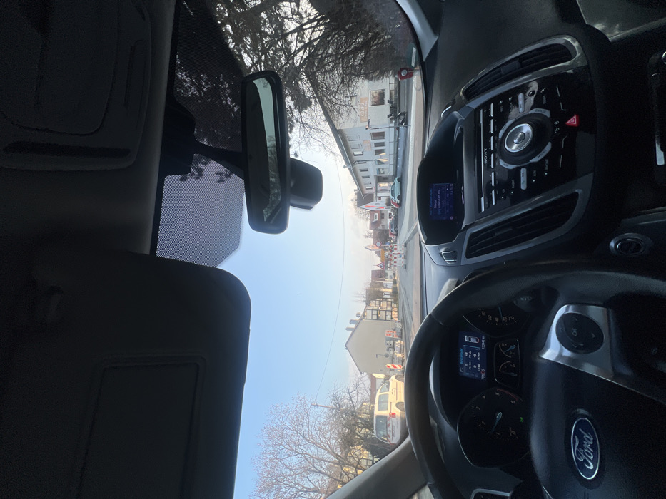 The image displays a forward-facing view from the interior of a Ford vehicle, likely from the driver's perspective