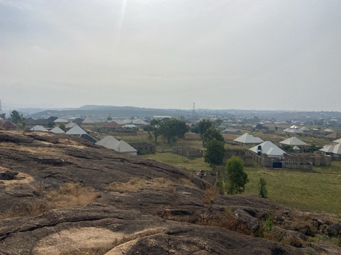This image presents an elevated, panoramic view of a residential area in the city of Jos, Nigeria