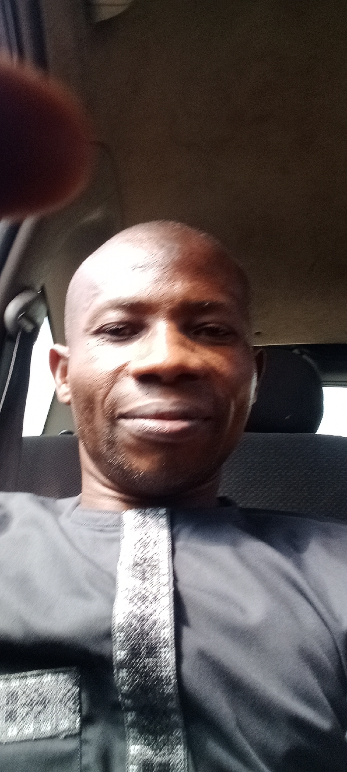 A selfie image captures an adult male inside a vehicle, located in the city of Lokoja, Nigeria