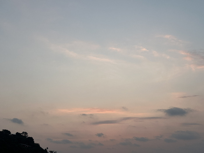 An outdoor photographic capture primarily features the sky during either dawn or dusk, constituting approximately 90% of the visual field
