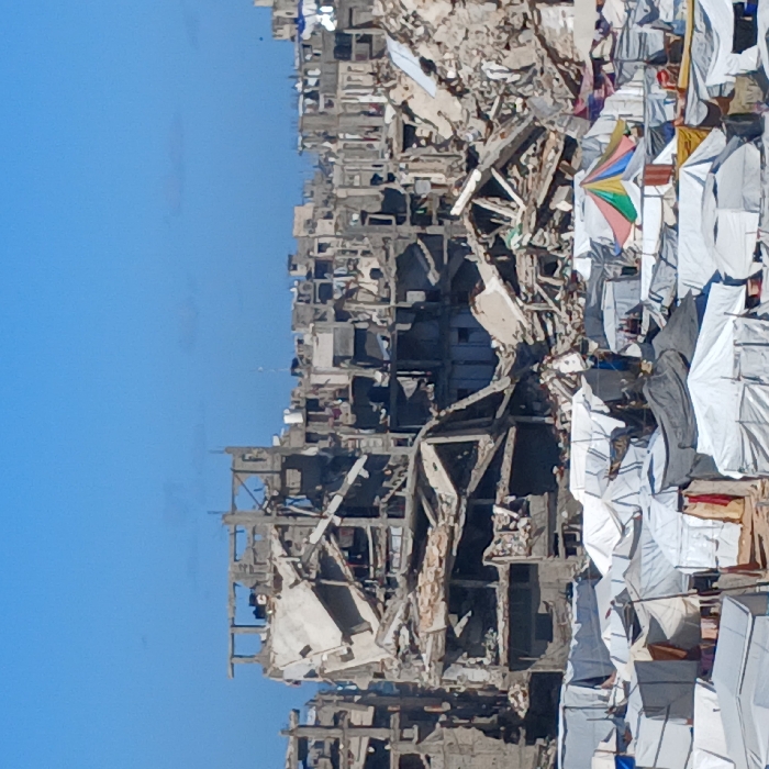 - "The image displays a panoramic view of a devastated urban environment in the city of Gaza, Palestinian Territory, under a clear blue sky with minimal cloud cover" by FM-lJnzj1, licensed under CC BY 4.0