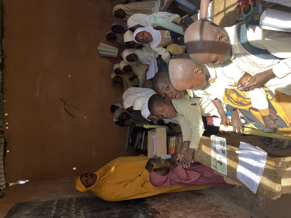 This image captures an indoor educational setting, likely a classroom, in Bukuru, Nigeria