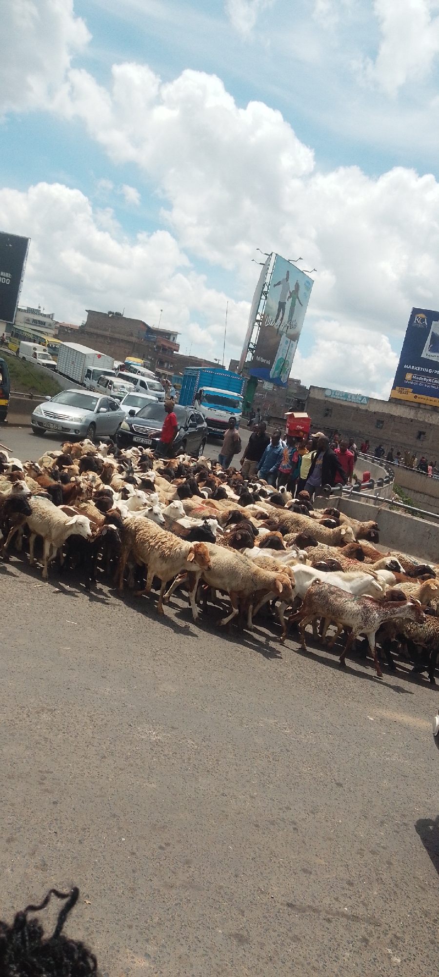 - "A large flock of sheep is crossing a busy street in Nairobi, Kenya, halting traffic" by FM-vf1M43, licensed under CC BY 4.0