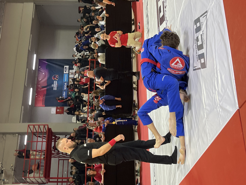 An indoor sports arena in Градска општина Пантелеј, Serbia, hosts a martial arts competition