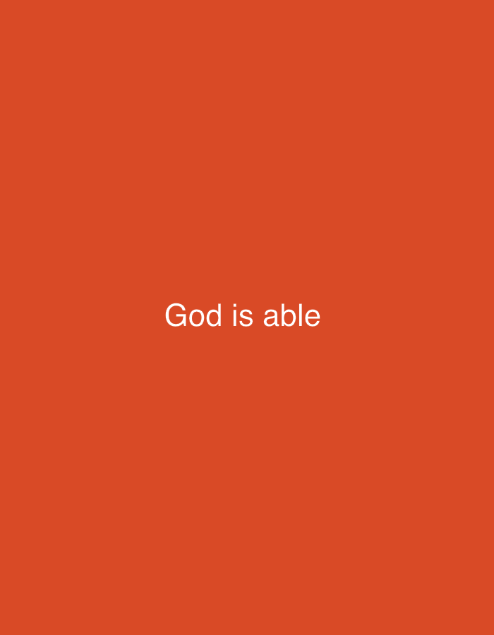 - "The image is a solid orange background with the white text "God is able" centered on the frame" by FM-R0m5T2, licensed under CC BY 4.0