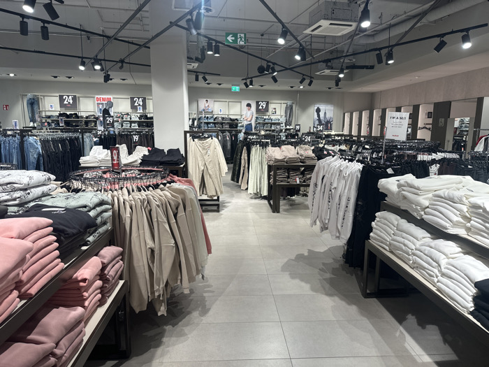 The image depicts the interior of a clothing retail store identified as "I'M A S