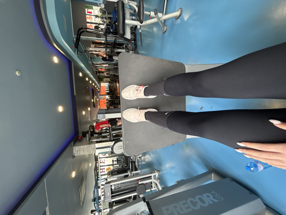 - "The image displays a first-person perspective shot from an individual's legs, positioned on the foot platform of a leg press machine within a commercial gym" by FM-3Stcj2, licensed under CC BY 4.0