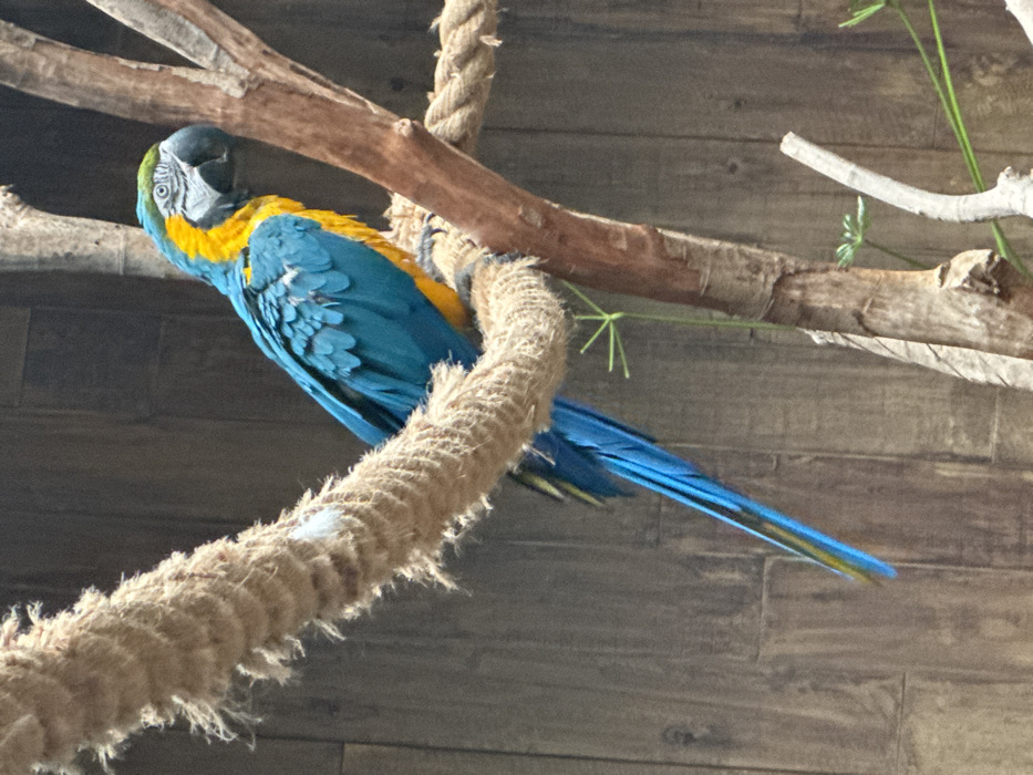- "A Blue-and-Yellow Macaw (Ara ararauna) is perched on a thick, braided natural fiber rope within an aviary setting at Ocean Park, Hong Kong, China" by FM-0W7MV2, licensed under CC BY 4.0