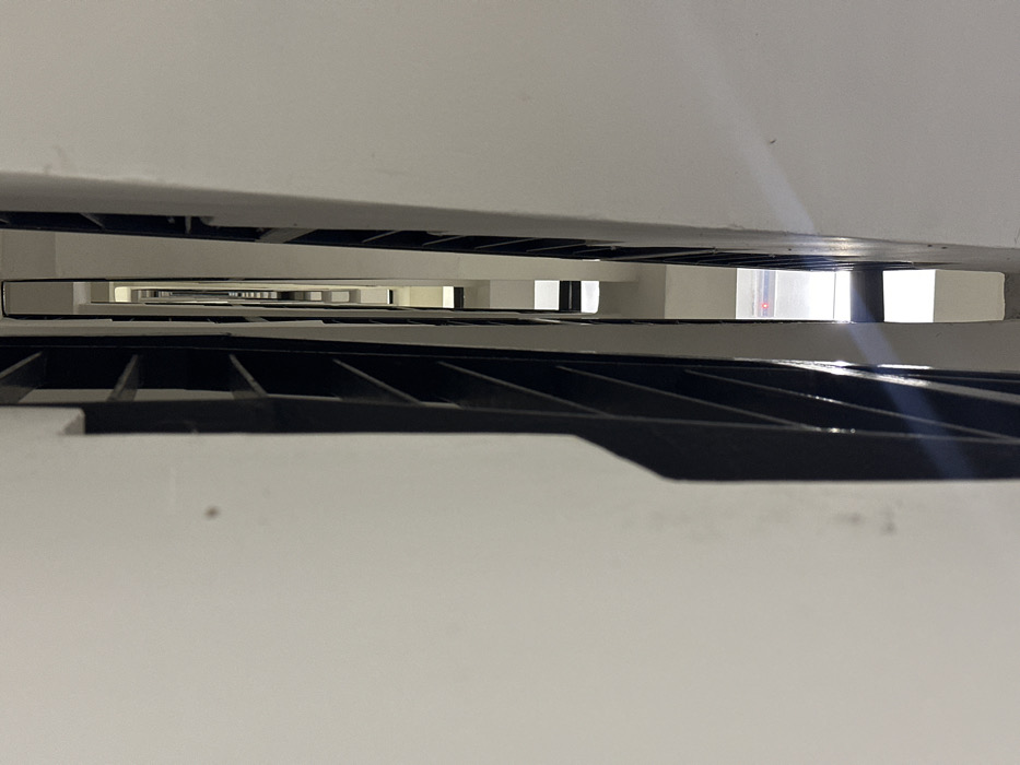 A multi-story stairwell interior is depicted, viewed from an elevated perspective, within a building in Sepang, Malaysia. The scene presents a deep, vertical shaft flanked by two parallel light-colored walls, consistent with painted concrete. Dark, vertically oriented metal balustrades line the edges of the stair landings on both sides, extending downwards through multiple floor levels. Artificial lighting illuminates various lower landings, creating a repetitive pattern of light and shadow. A faint red light source or reflection is visible at the deepest discernible point of the shaft. A small, dark speck is observed on the left wall in the foreground. No individuals, activities, or interactions are present.