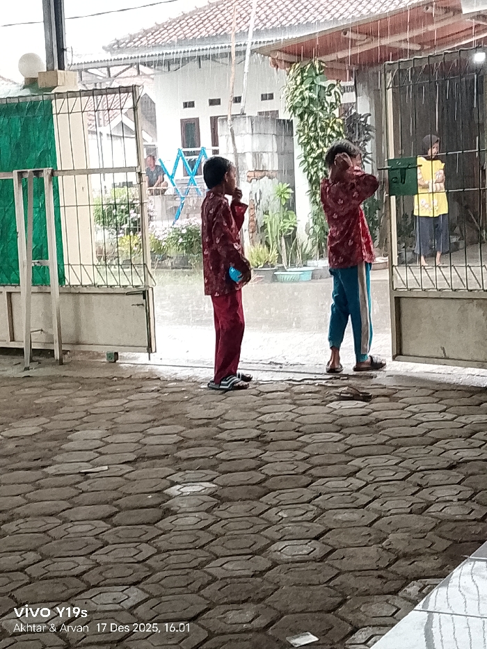 - "The scene depicts an outdoor residential area in Wanguk, Indonesia, during a heavy rainfall" by FM-bXIMf1, licensed under CC BY 4.0