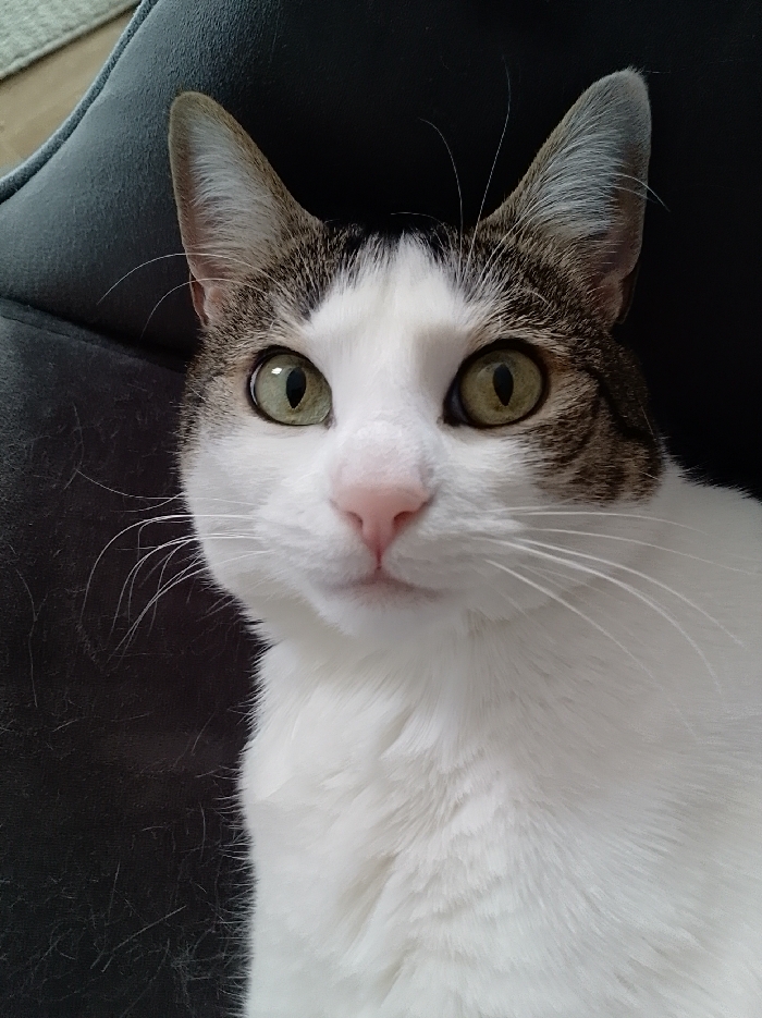 - "This image displays a domestic cat in a close-up portrait, situated indoors within the city of Unknown, Unknown" by FM-5n8Vg2, licensed under CC BY 4.0