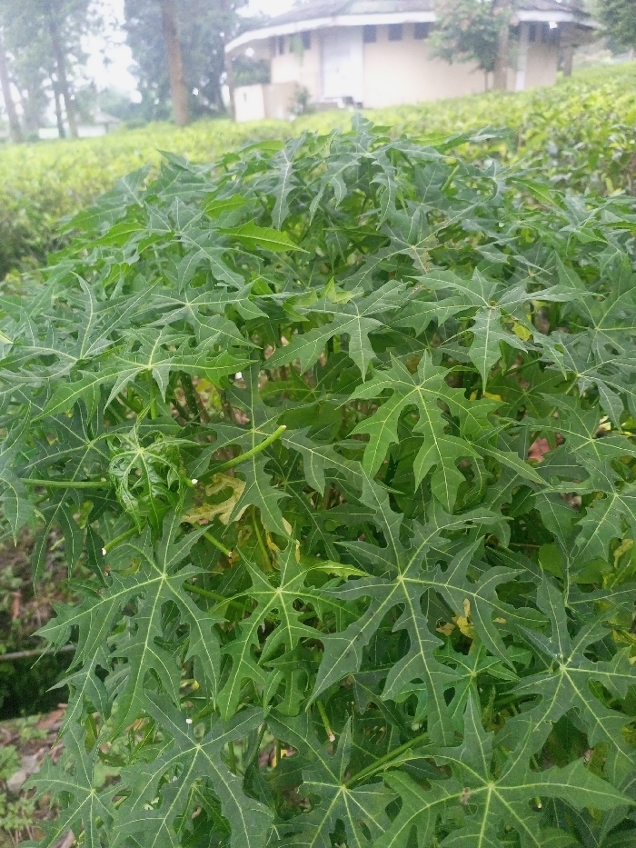 - "The image displays a dense foreground of a green plant, identified as likely Chaya (Cnidoscolus aconitifolius), characterized by numerous deeply-lobed, palmate leaves" by FM-uQLO53, licensed under CC BY 4.0