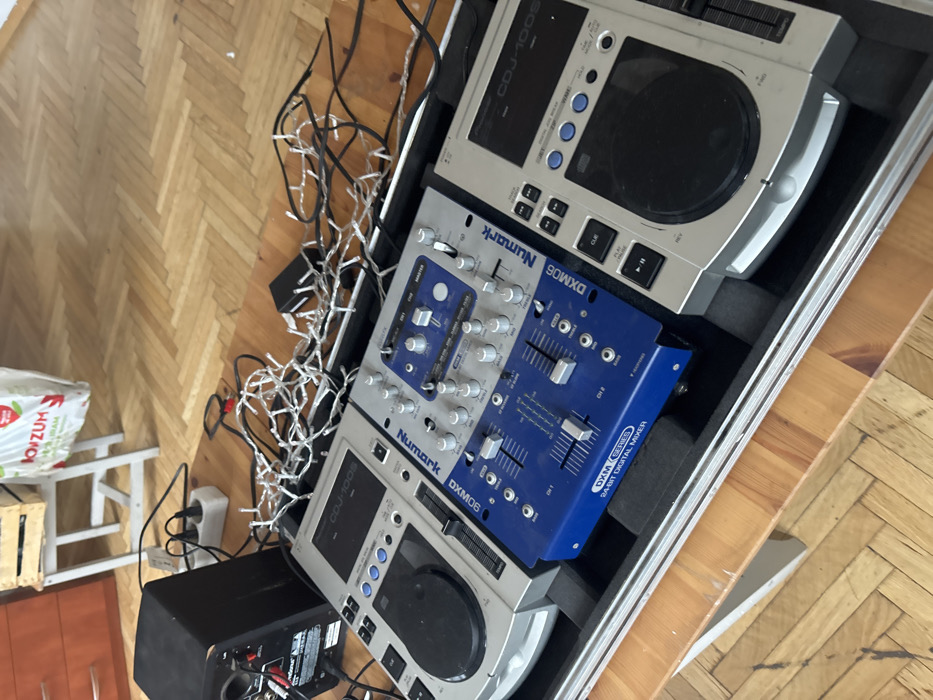 - "A DJ setup is observed on a light brown wooden table within an indoor environment in the City of Zagreb, Croatia" by FM-Y1Zvi1, licensed under CC BY 4.0