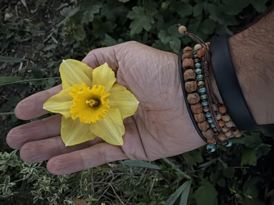 - "A hand holds a yellow daffodil flower" by FM-oB3Mx2, licensed under CC BY 4.0