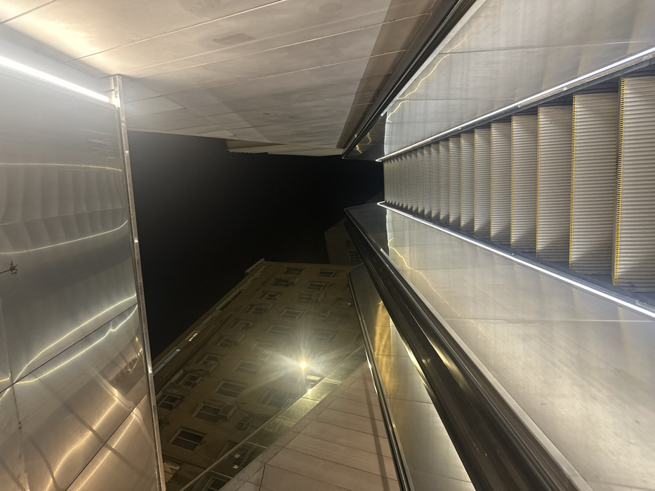 - "An upward angle captures an escalator ascending alongside a building" by FM-m9oXq2, licensed under CC BY 4.0