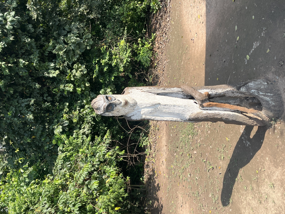 - "The image displays a vertically oriented wooden sculpture, approximately human-height, depicting an anthropomorphic figure resembling a primate or monkey" by FM-w5W832, licensed under CC BY 4.0