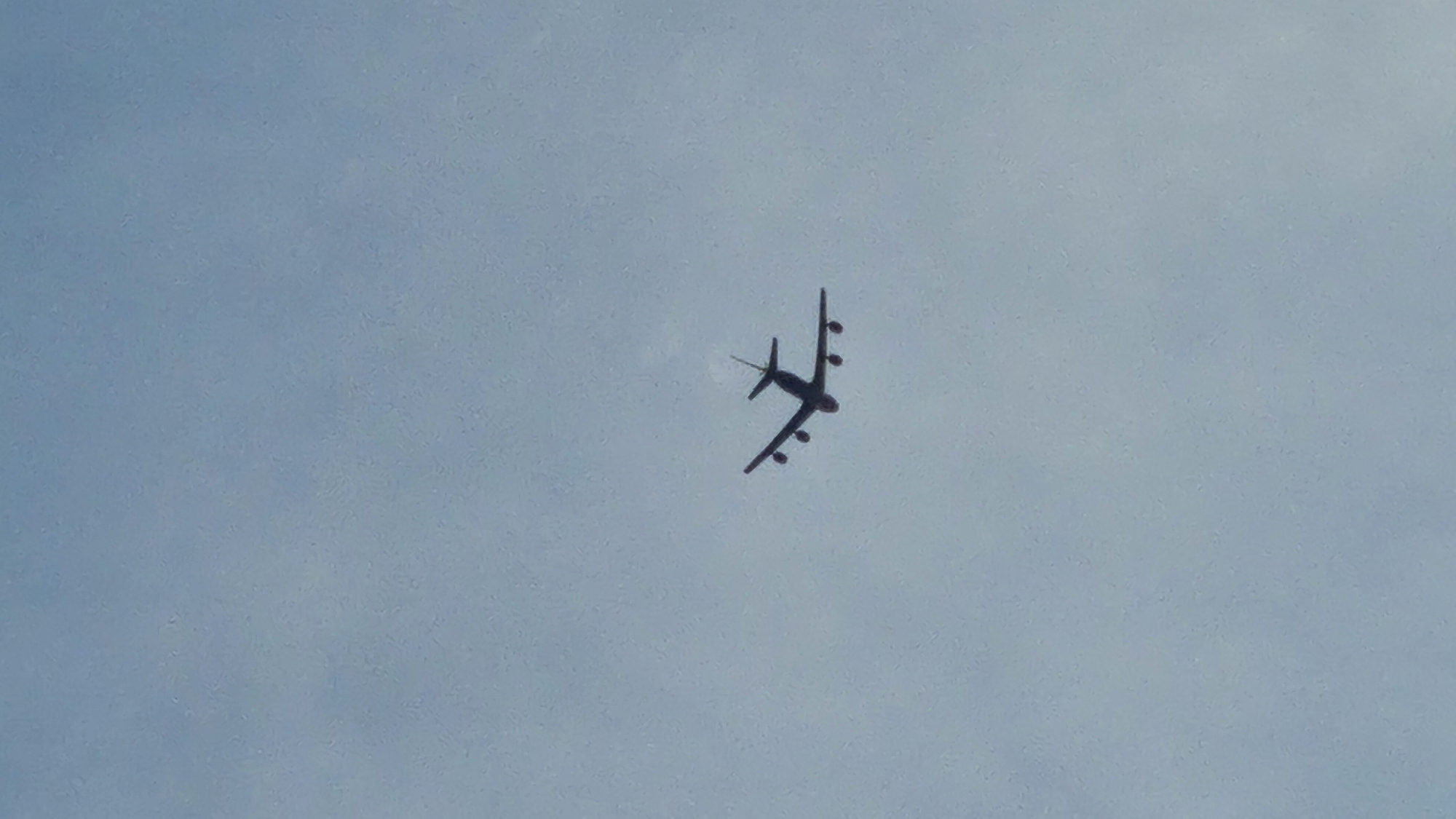 - "A large aircraft is flying overhead against a muted blue sky" by FM-1TRqb2, licensed under CC BY 4.0
