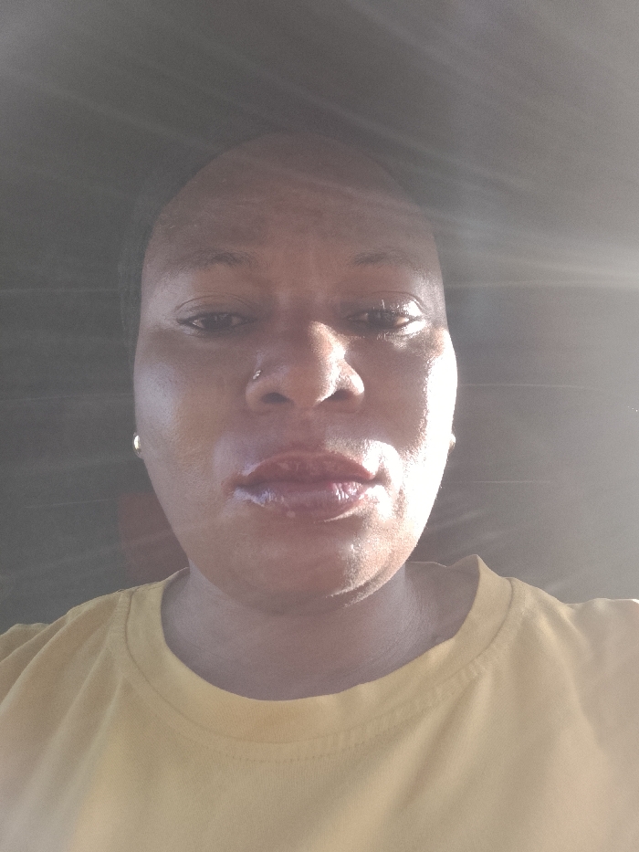 An adult individual, appearing to be female, is depicted in a close-up, head-and-shoulders portrait, likely a selfie, taken in the city of Television, Nigeria