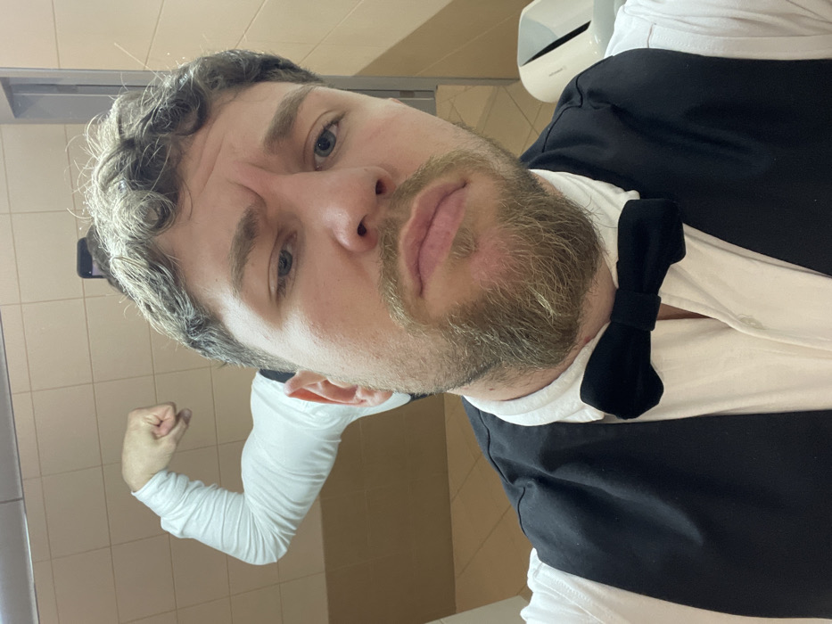 - "An adult male with light brown curly hair, blue eyes, and a light brown full beard and mustache is depicted in a mirror selfie taken within what appears to be a public restroom in Sofia, Bulgaria" by FM-TfcDF3, licensed under CC BY 4.0