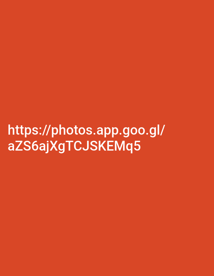 The provided image displays a solid, uniform reddish-orange background. Centered in the lower half of this background is white, sans-serif text presenting a web address: "https://photos.app.goo.gl/aZS6ajXgTCJSKEMq5". No visual information regarding people, subjects, objects, actions, interactions, or environmental details is present within this displayed image, nor is any specific location, including in Ozark, United States, discernible from its content.