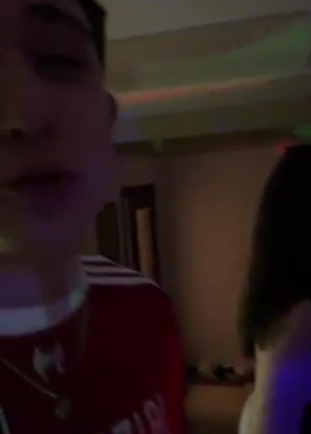 A short video features two young adults at what appears to be a house party