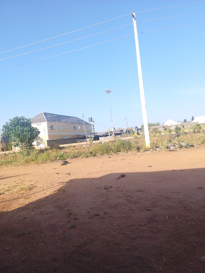 An outdoor scene in Rido, Nigeria, features an unpaved reddish-brown dirt ground in the foreground, partially covered by a large shadow on the lower right