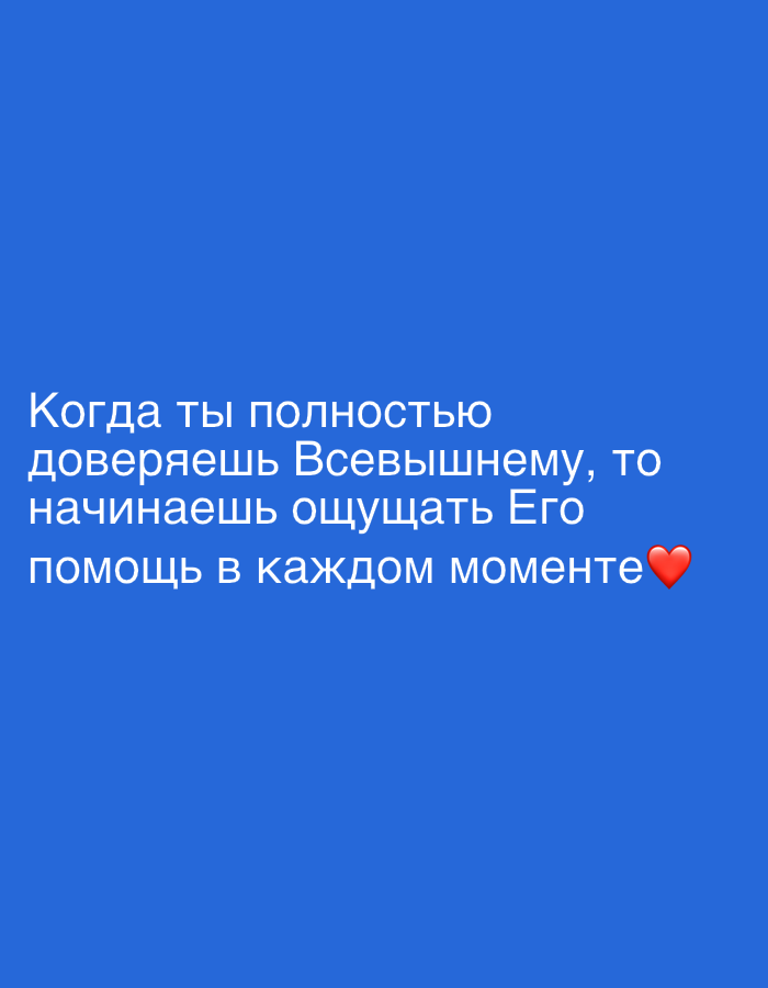 The image displays a motivational message in Russian. The text reads, "When you fully trust the Almighty, you begin to feel His help in every moment." A red heart symbol appears at the end of the phrase. The background color is a solid, deep blue. The text is rendered in white.