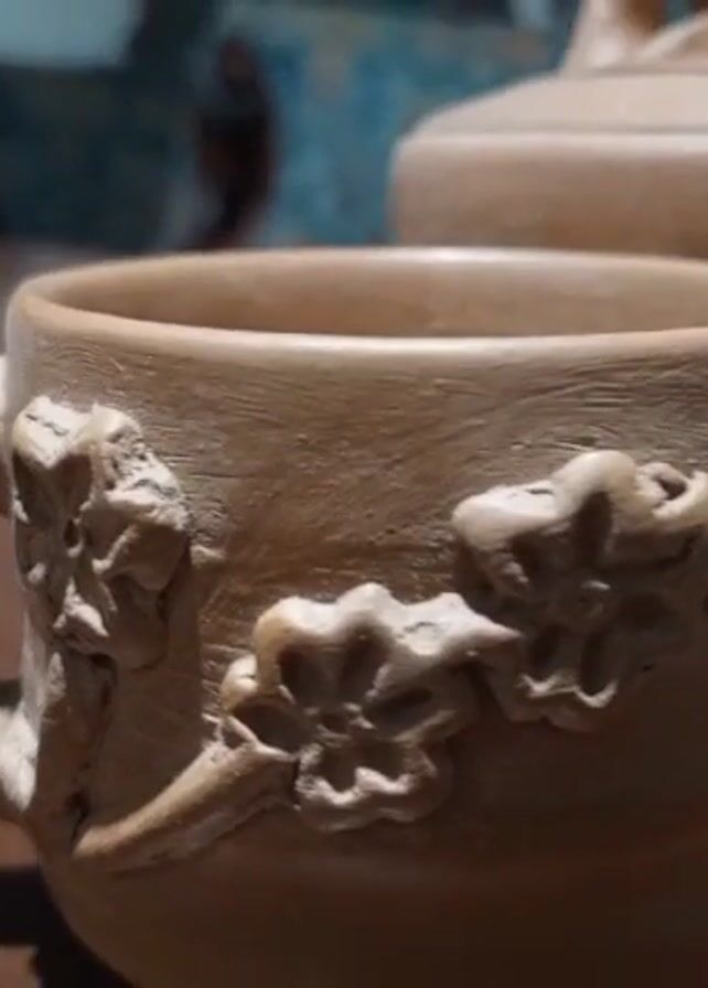 - "brown clay teacup with a floral design on its side, next to a matching teapot" by FM-adnsp2, licensed under CC BY 4.0
