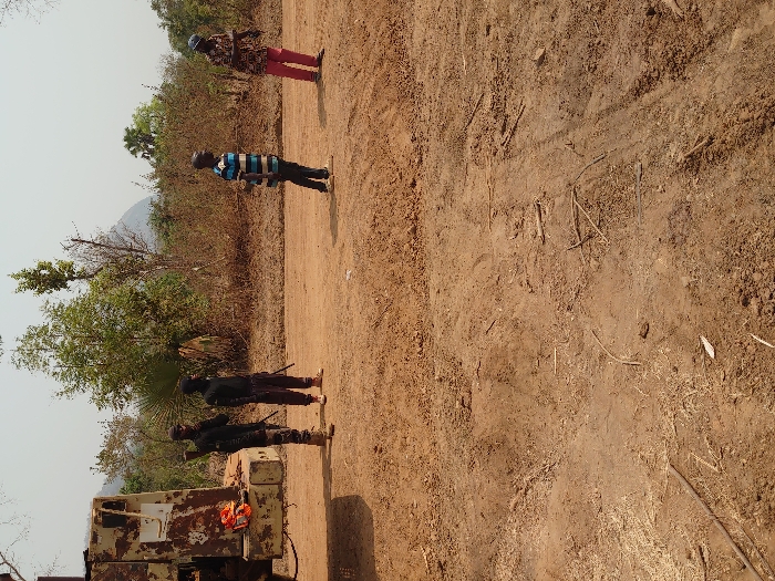 In Adankolo, Nigeria, the scene depicts an unpaved, reddish-brown dirt area with sparse dry vegetation