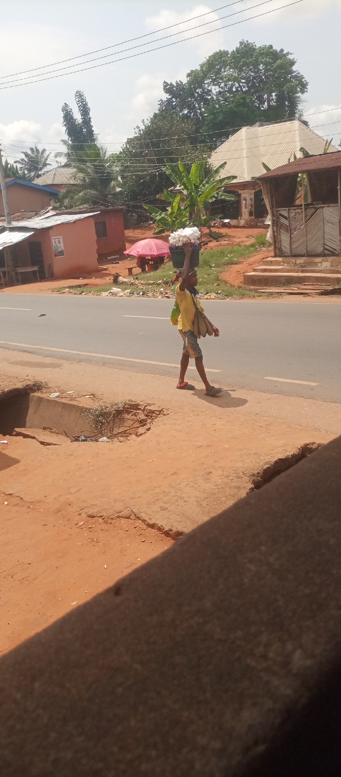 An outdoor scene in Nkpor, Nigeria, depicts a daytime roadside environment