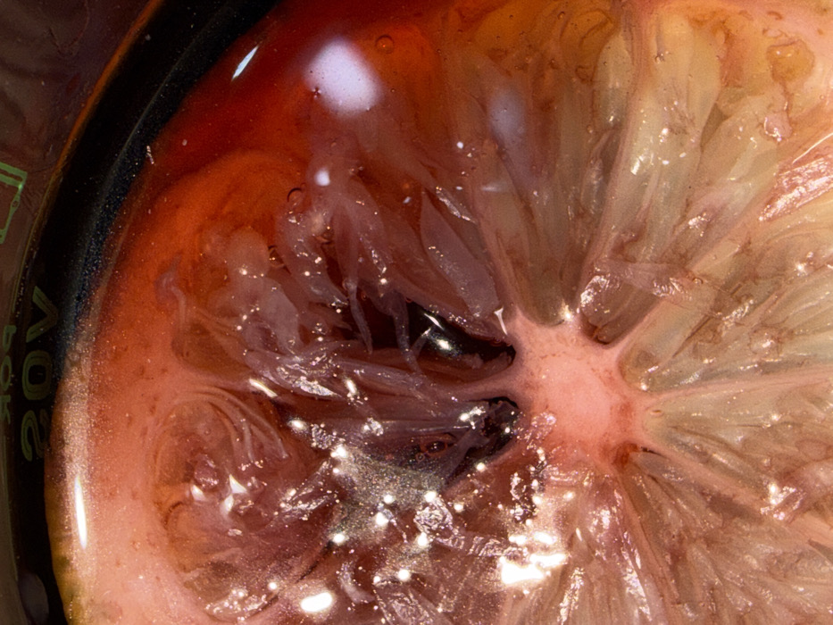 - "A close-up shot reveals a slice of fruit, likely a citrus, submerged in liquid" by FM-MfmqH2, licensed under CC BY 4.0
