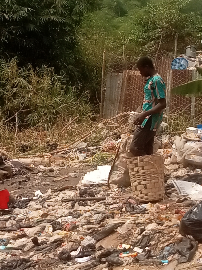 The scene depicts an outdoor dumpsite in Ogbunike, Nigeria