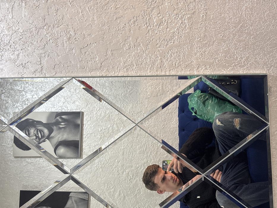- "This image captures a young adult male in a self-portrait reflected within a large, multi-faceted mirror composed of diamond-shaped segments, located in an indoor environment in Kutaisi, Georgia" by FM-DELcs2, licensed under CC BY 4.0