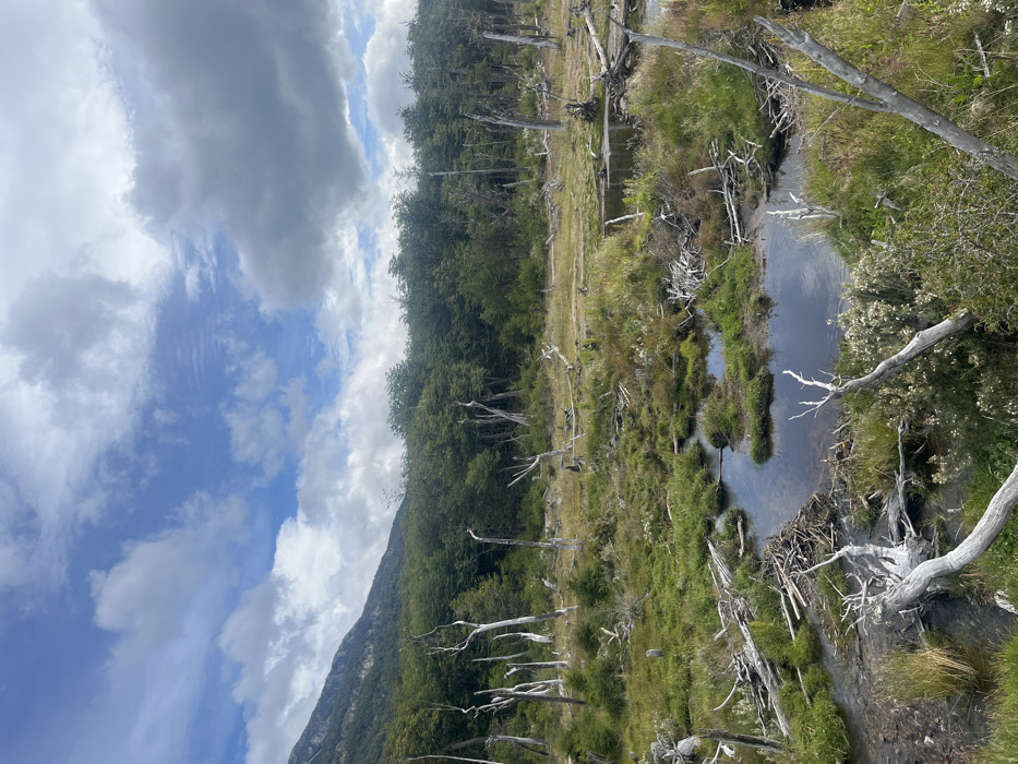 - "A narrow, reflective stream meanders through a grassy, marshy landscape dotted with bleached, skeletal tree trunks" by FM-rplFE3, licensed under CC BY 4.0