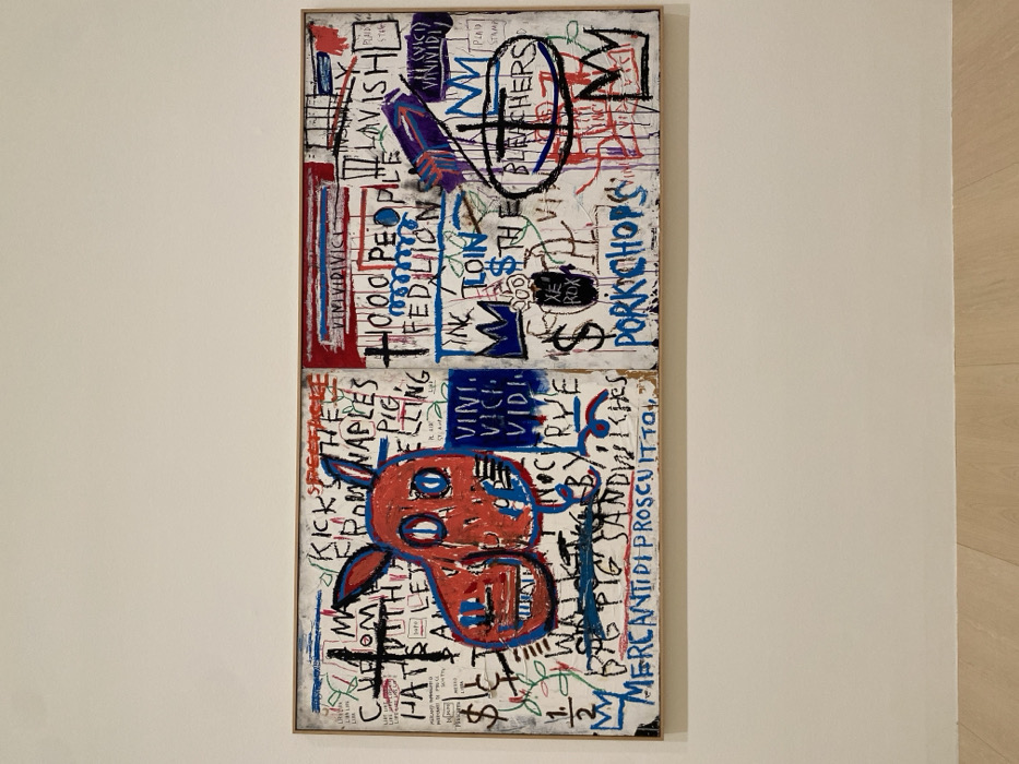 - "A large, framed diptych painting titled *Vini Vidi Vidici* (1984) by Jean-Michel Basquiat is displayed centrally on a vast, unadorned white wall inside the Guggenheim Museum Bilbao, located in Bilbao, Spain" by FM-whkRu1, licensed under CC BY 4.0