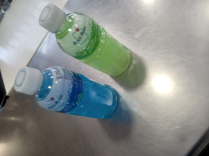 - "The image displays two plastic Mogu Mogu brand juice bottles positioned on a brushed stainless steel surface in Sallaumines, France" by FM-MtLfs2, licensed under CC BY 4.0