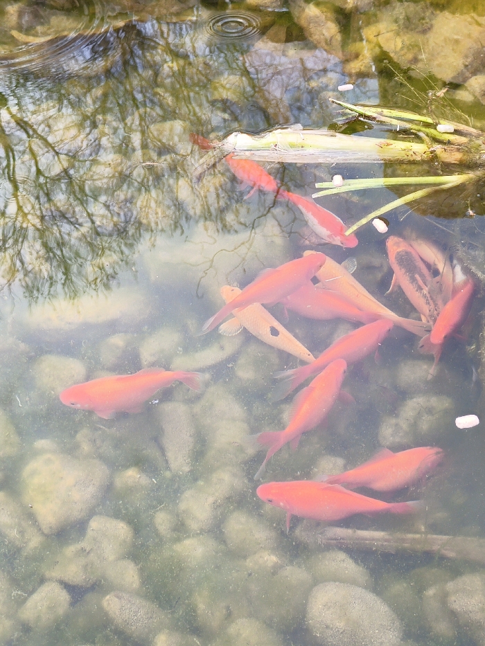 - "An overhead view captures a shallow pond in Sevastopol, Ukraine, teeming with approximately 15-20 goldfish or koi-like fish" by FM-YVp303, licensed under CC BY 4.0
