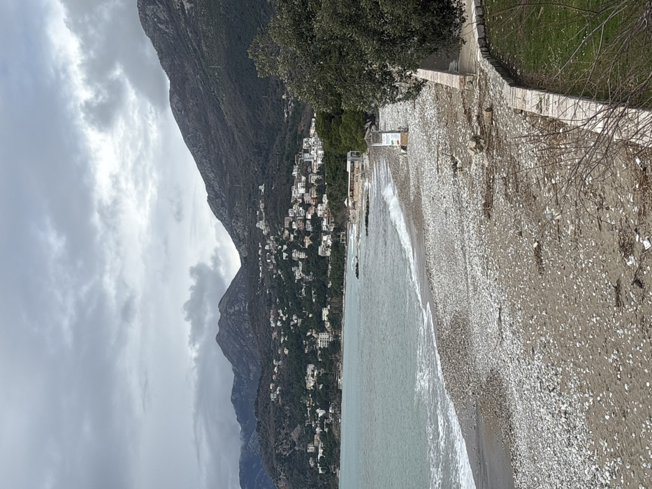 - "An elevated view captures a wide, pebble-covered beach in Bar, Montenegro, under an overcast sky" by FM-3Z1aJ3, licensed under CC BY 4.0