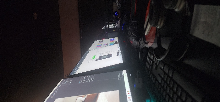 - "The image displays a dimly lit computer workstation setup, observed from a low, oblique perspective, within an indoor environment in Abuja, Nigeria" by FM-M7Hsk2, licensed under CC BY 4.0