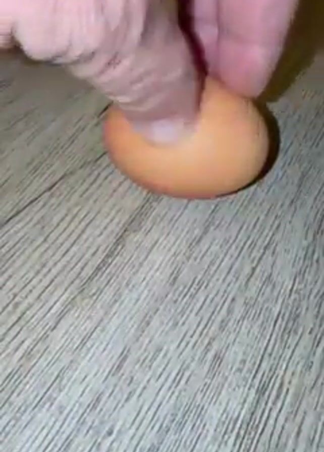 A close-up shot shows a brown chicken egg on a light wood-grain surface