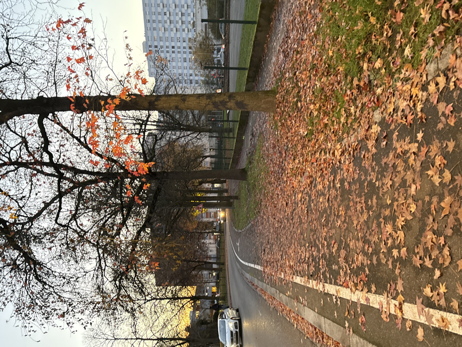 - "The image depicts an urban street scene in Strasbourg, France, during late autumn or early winter, likely at dusk, characterized by the low, warm light on the horizon and abundant fallen leaves" by FM-7xklN2, licensed under CC BY 4.0